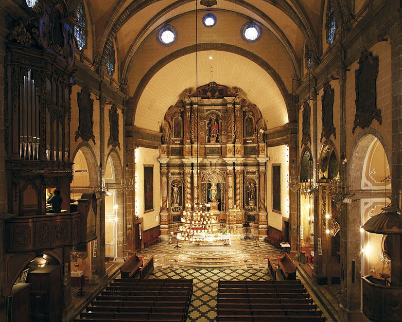 Ya en el interior de la iglesia, la distribución responde a una planta de nave única, con capillas entre los contrafuertes que sostienen las cubiertas de crucería que forman la bóveda. Quien agudice los sentidos podrá observar que en el punto donde confluyen los arcos los constructores indicaran la fecha de finalización del tramo, es decir, los plazos de entrega del templo. Las columnas laterales de la bóveda llevan grabado el escudo de Alaró a los capiteles.